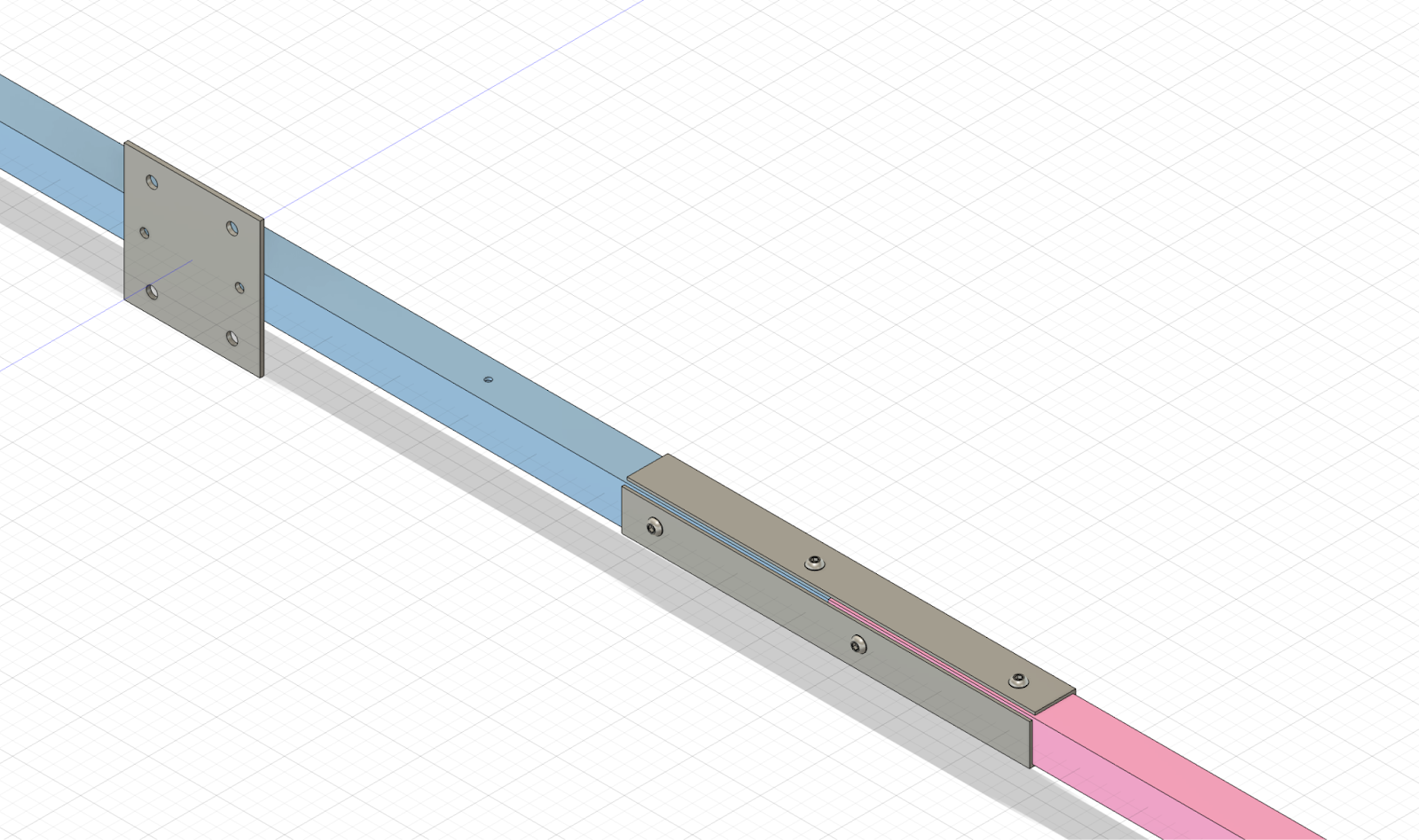 Boom wykonany został z aluminiowego profilu 30 mm x 30 mm o ściance 2 mm. Aby ułatwić transport i przechowywanie, boom jest dzielony i składa się z dwóch odcinków - jednego o długości 200 cm i drugiego o długości 107 cm. Połączenie obu części wykonano za pomocą dwóch 30 cm odcinków kątownika aluminiowego 30x30x2 mm zamocowanych do zewnętrznych powierzchni profilu boomu. Kątowniki przykręcone są na stałe śrubami do krótszej części boomu i wystają poza jej długość tworząc gniazdo, w które wsuwa się drugą część boomu. Do zamocowania tej części boomu użyliśmy śrub z nakrętkami motylkowymi, co znacznie ułatwia montaż eliminując konieczność stosowania narzędzi.