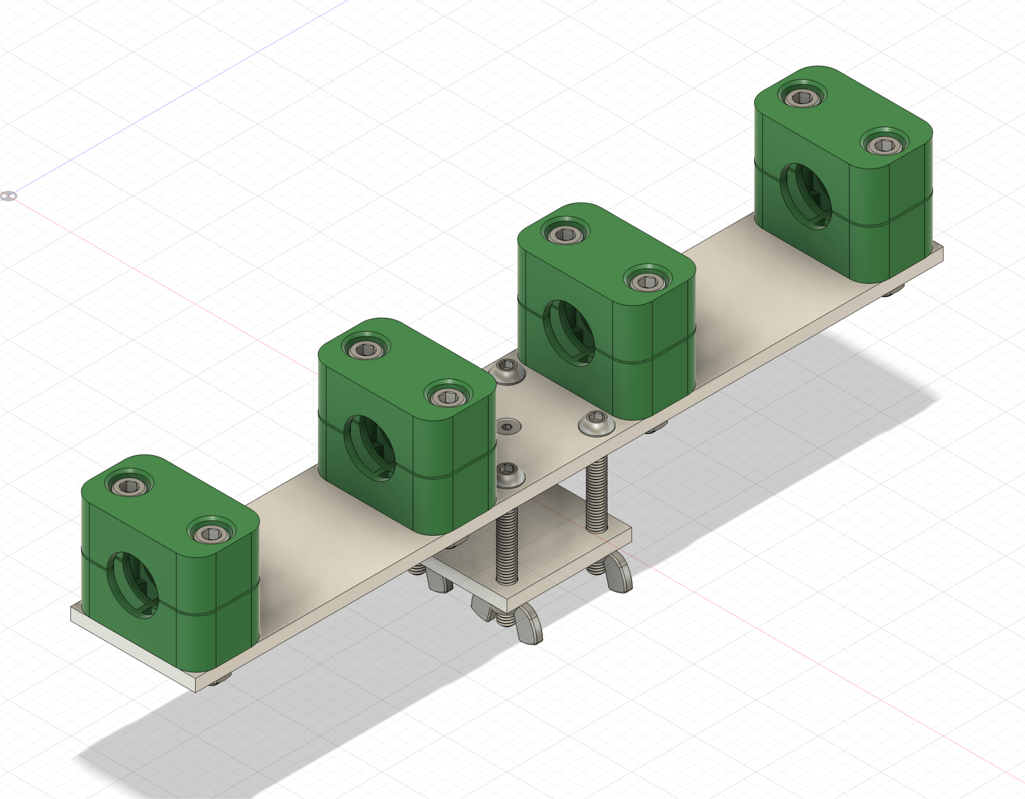 Na środku płytki znajduje się sfazowany otwór z gwintem M4, w który wkręcona na stałe jest śruba M4 x 8 z łbem stożkowym. Jest to śruba lokalizacyjna opisana wyżej. W płytce montażowej znajdują się również cztery gwintowane otwory M6, w które na stałe wkręcone są śruby M6 x 50 z łbem kulistym.